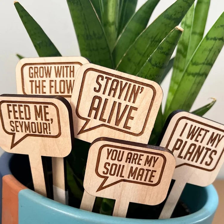 Adaugă un element vesel și interactiv aranjamentelor tale florale cu props pentru flori cu mesaje amuzante – set 5 bucăți.